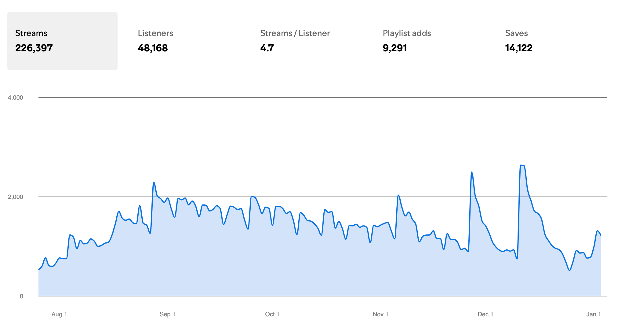 While playlisting can be a rollercoaster ride, ads are beneficial in the long term. In fact, the vast majority of streams happen after the campaign is over!
